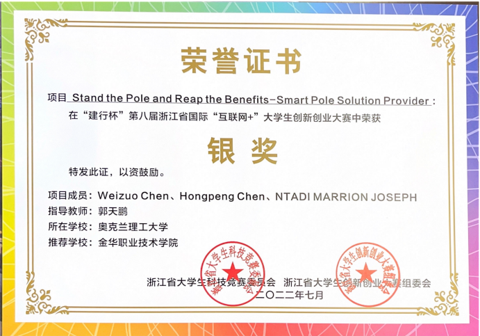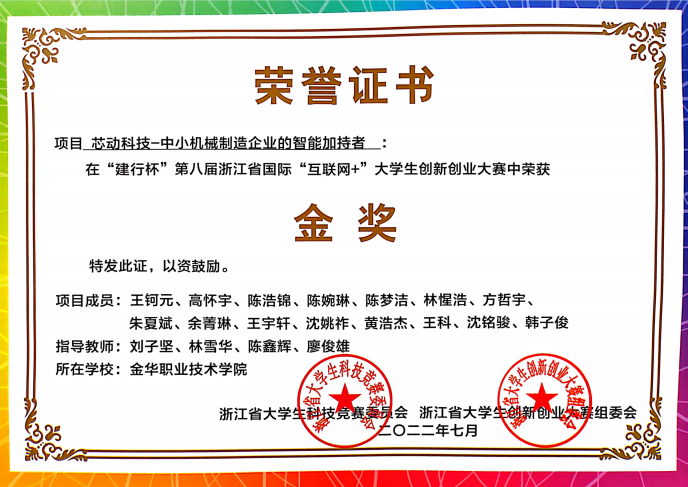 5 | 挑战杯大学生课外学术科技作品竞赛 | 省二等奖 1项 | 朱锋盼 李晓珍 刘子坚 |