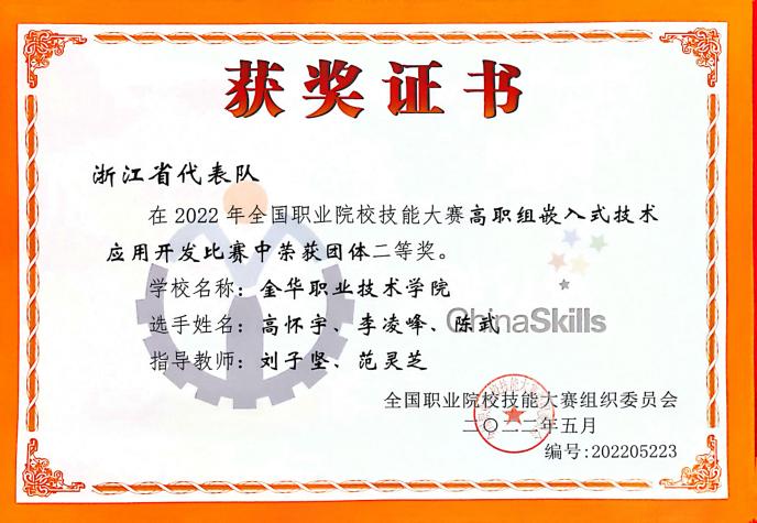 2 | 嵌入式产品开发职业技能大赛 | 省一等奖 3项 | 刘子坚 范灵芝 |