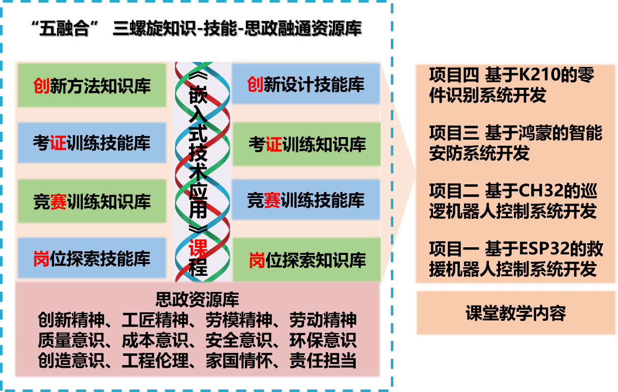 嵌入式技术应用广泛,将技术与应用场景相结合,懂得嵌入式技术的重要性,比如将嵌入式技术与空间站机械手相结合,让学生知道细致的重要性,进而培养学生严谨求实的精神。