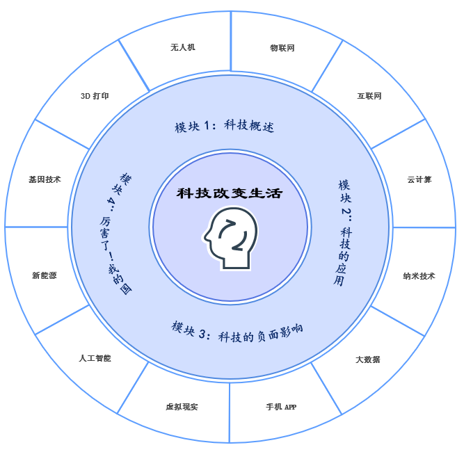 第二模块科技应用开拓科技视野,培养学生的创新意识。