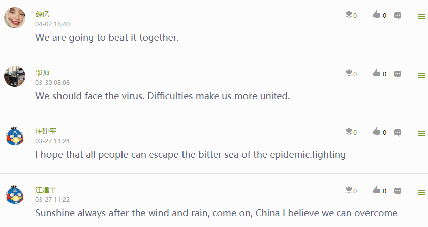 话题讨论“抗疫英文演讲We Are All Fighters”,通过课后拓展实现以拓升技,达到升化职业理想目的。