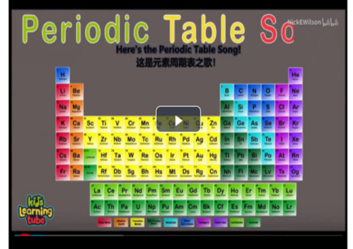 视频导入:用“元素周期表之歌”学习英文元素,达到引兴趣,大胆说的目的。
