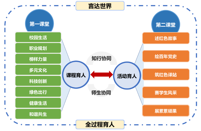 (二)言达世界:立足通识教育,发挥语言优势,打造“双课堂”英语课程思政育人生态
