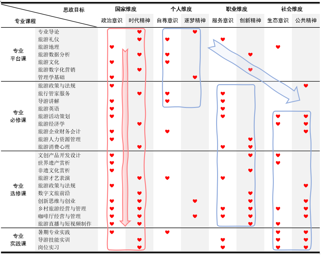 图2. 高职旅游类专业思政“目标-课程”关系矩阵
