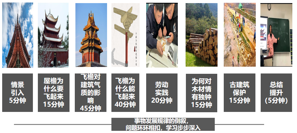 以中国古代建筑国人为什么喜欢木材的教学环节设计(15分钟)为例:(1)教学目标:多方面沉浸式地了解建筑材料的选择;
