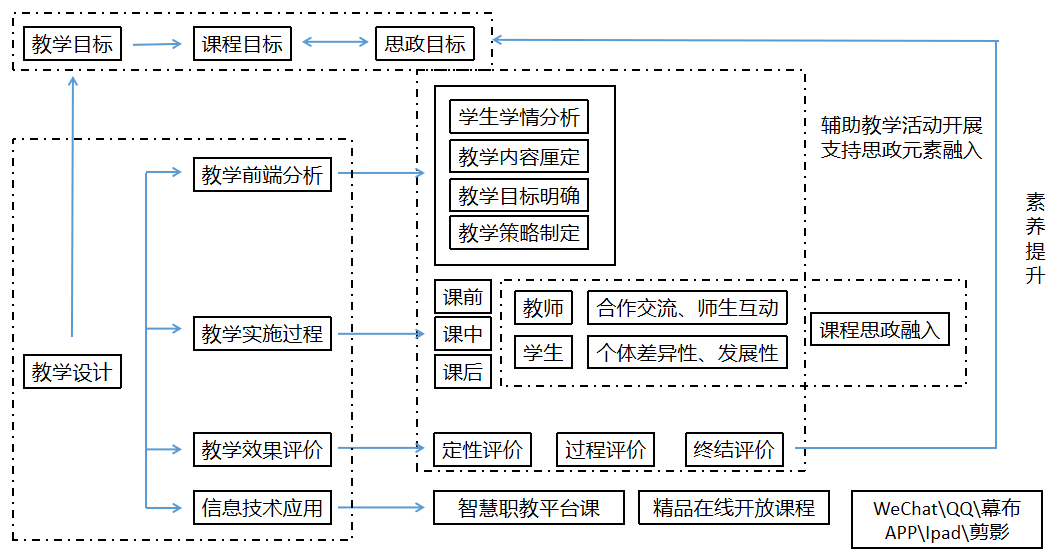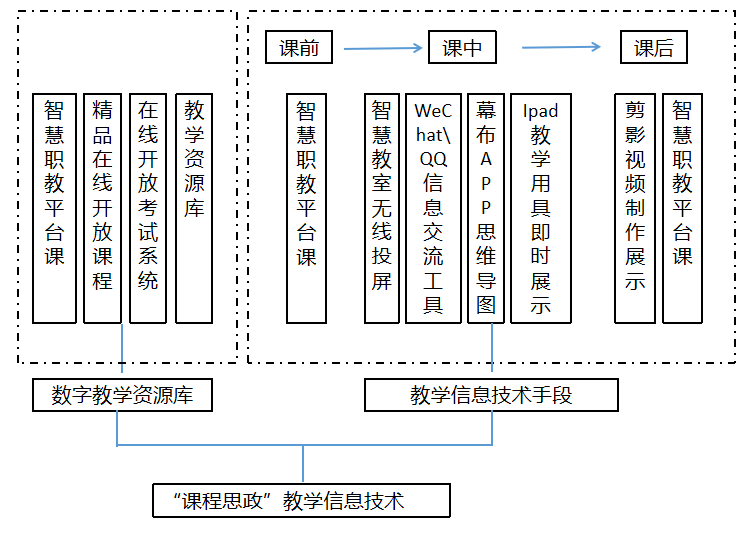 理论教学:课前、课中、课后采用 WeChat、QQ、Ipad、调查小程序、智慧职教平台等信息化手段引导和帮助学生吸收消化理论知识。