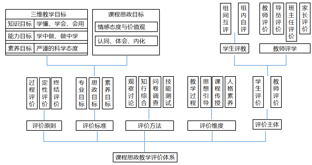 (3)探索“四维度”教学评价机制。根据三维教学目标和课程思政目标,设计教学过程、思想引导、课程传授、人格素养四个维度的评价体系,全方位多维度掌握学生的学习效果。