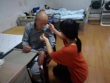 体验失认老人协助患病爷爷进食