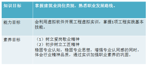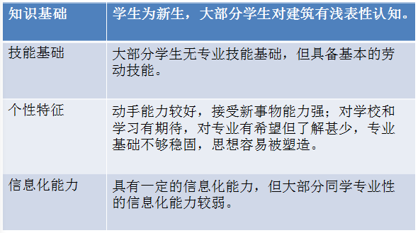学情分析:课程主要授课对象为建筑类或相关专业的新生,学生对建筑行业缺少基本的认知,或者认知模糊。学生专业思想未稳固,对所选专业的学习内容、方法、职业发展路径、职业素养都缺乏准确认识。