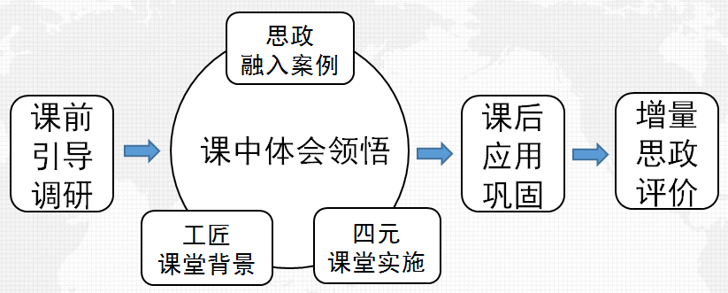 结合办学定位、专业特色和课程特点,挖掘工匠精神中的“爱岗敬业”专题梳理思想政治教育资源,完善课程内容,改进教学方法,探索创新课程思政建设模式和方法路径,将课程建设目标融入课程教学过程。具体设计流程如下: