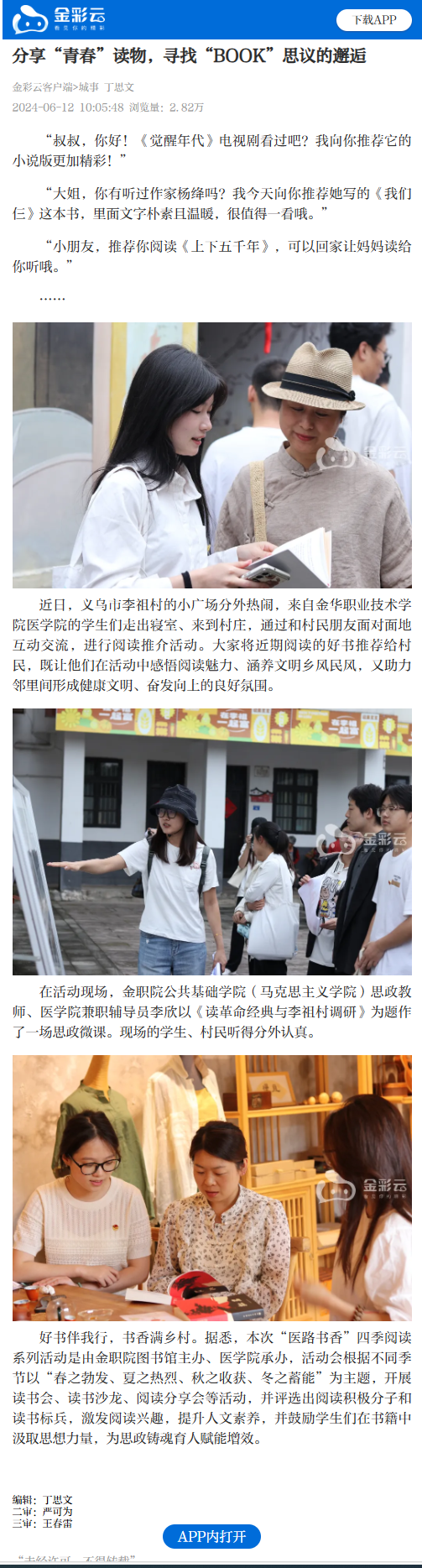 金彩云:分享“青春”读物,寻找“BOOK”思议的邂逅
