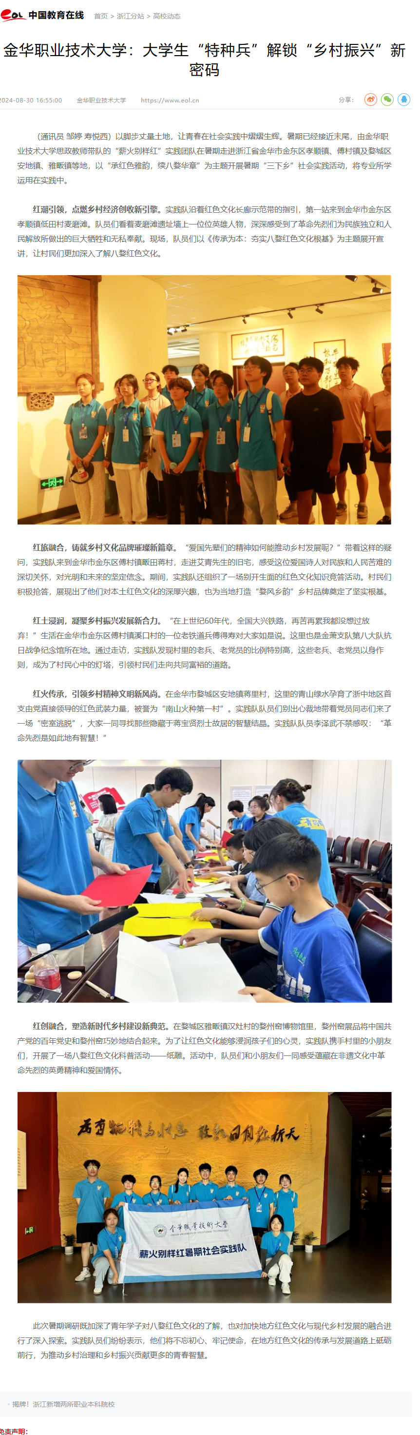 中国教育在线:金华职业技术大学:大学生“特种兵”解锁“乡村振兴”新密码