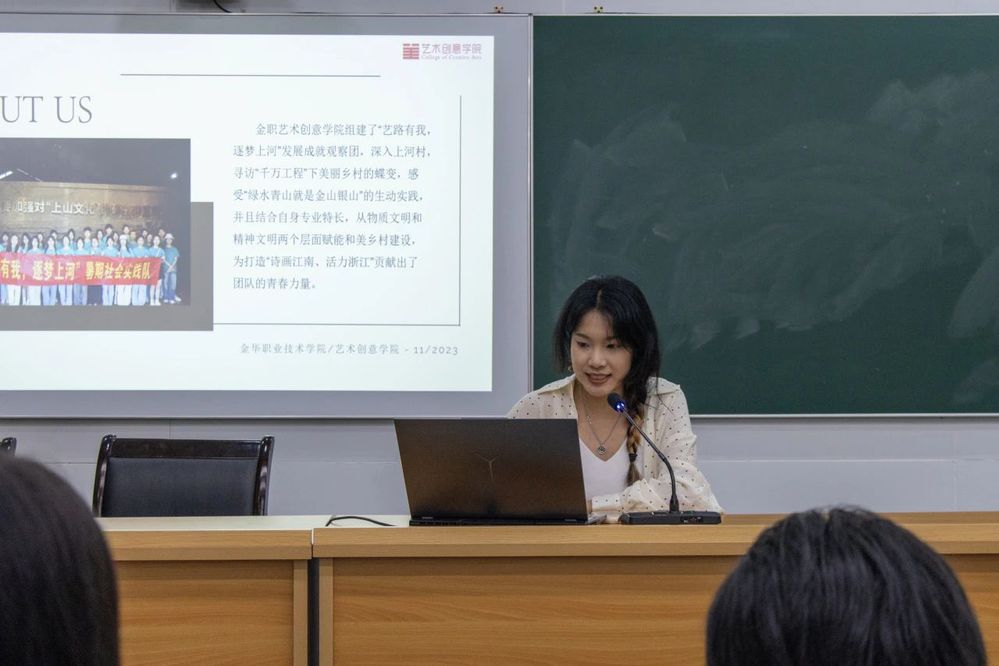 宣讲结束后,现场师生围绕学习贯彻全国两会精神展开交流。社团成员陈可人作为代表向在场的社团成员讲述了“艺路有我,逐梦上河”的故事,用自己的所见所闻所感倡议更多青年学生们用实际行动践行全国两会精神,深入乡村建设,共同为乡村振兴献计献策。
