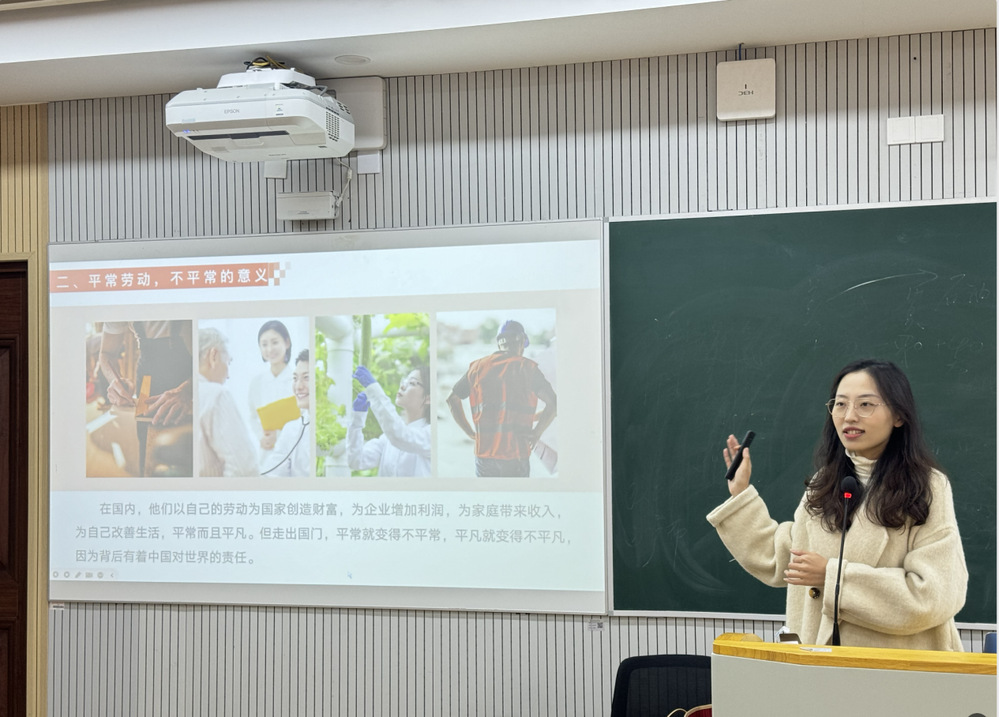 李思雨以习近平总书记在出席和平共处五项原则发表70周年纪念大会上的讲话为纲领,深刻阐述了“同球共济”的时代内涵,并结合具体案例,生动展示了中国劳动者在对外援助中的卓越贡献。这些案例不仅彰显了中国劳动者的精湛技艺和顽强拼搏精神,也体现了中国作为大国的担当和情怀。她寄语广大青年学子,要始终保持对国家和民族的热爱之情,积极投身国家建设和社会进步事业,不断学习新知识、新技能,提升自身综合素质和竞争力,为实现中华民族伟大复兴的中国梦贡献自己的青春智慧和力量。