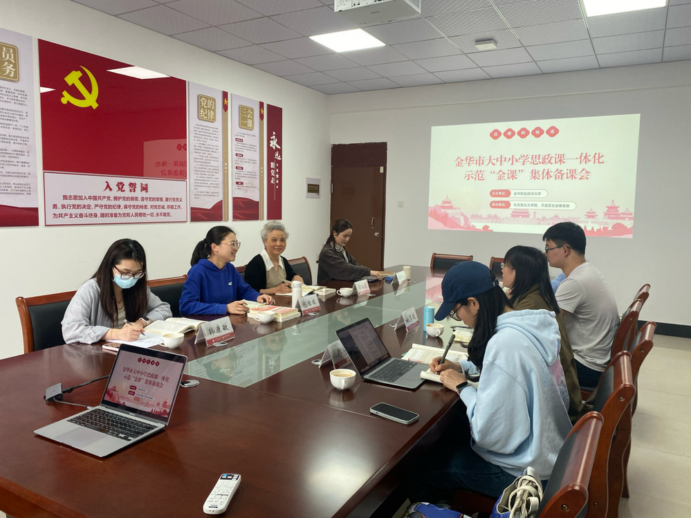 为深入贯彻落实思政教育一体化建设要求,让文化传承与创新在思政课堂中绽放光彩,近日,由我院马克思主义中国化教学部牵头,金华开发区社会事务部协同的“金华市大中小学思政课一体化示范金课集体备课会”在西教1-404成功举行。来自大中小学不同学段的思政课教师代表怀着对思政教育的热忱与对文化传承的使命,齐聚一堂,共同探讨思政“金课”的打造路径。