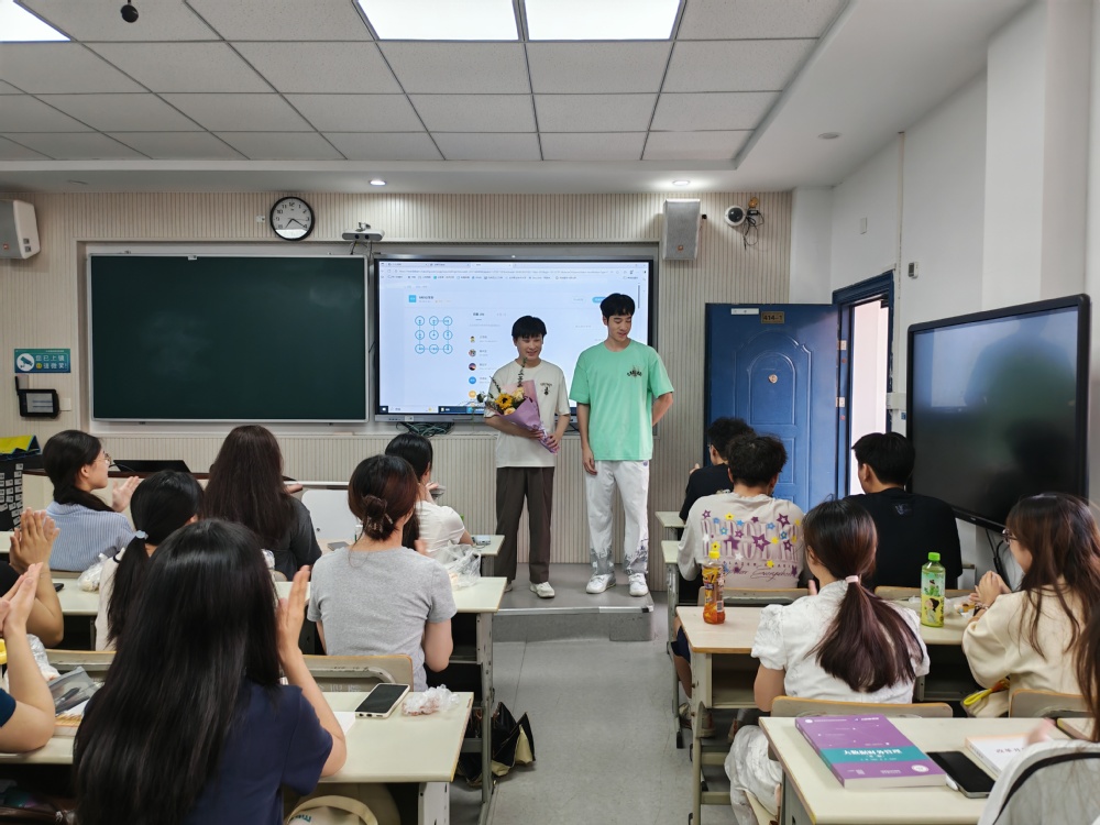 在清晨早八铃声中,李路生、商熵两位老师甫一抵达教室,便收获了学生们精心准备的惊喜——一束象征教龄的鲜花,以及一张题写着“提灯引路,秉立德至诚之念传马列薪火;育梦成光,怀笃行致远之心育时代新人”的贺卡。这暖心的礼物,刹那间温暖了两位老师的心田,这是学院与学生对他们教育工作的认可与激励。身为思政课教师,他们称将以此为动力,持续深入、透彻且生动地讲解理论知识,促使真理的种子在学生心中生根发芽。