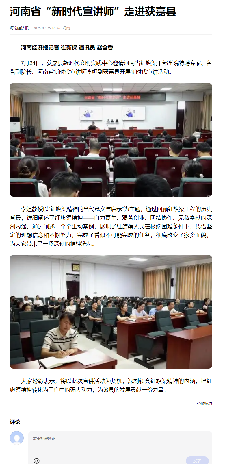 河南经济报:河南省“新时代宣讲师”走进获嘉县