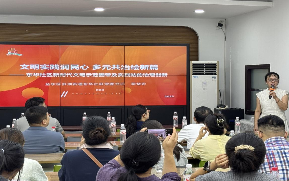 现场教学环节组织学员先后深入婺城区城东街道新时代文明实践所等10余个先进实践站点与示范圈(带),实地观摩阵地建设与运营实效,学习先进经验与创新做法。