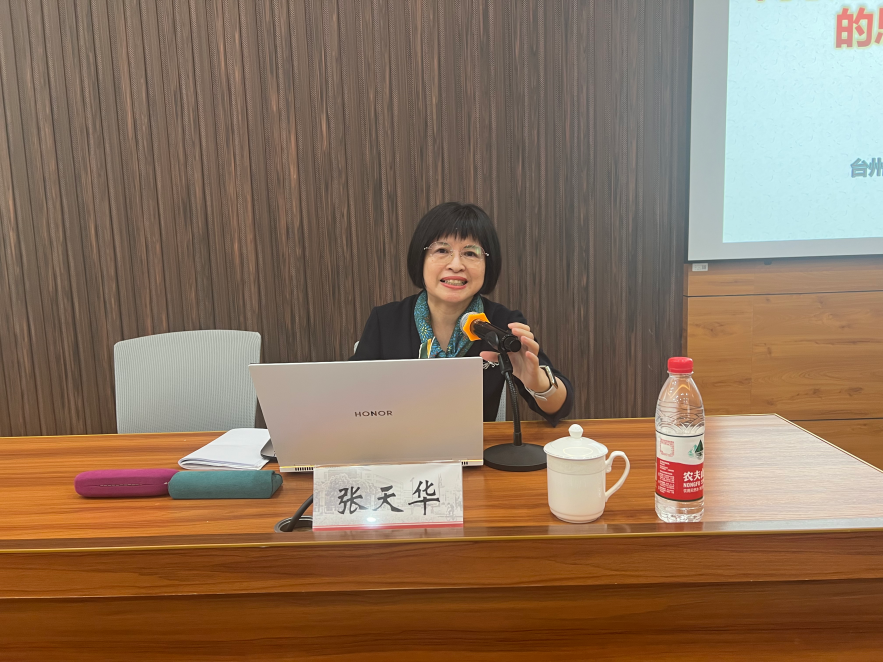 讲座中,张天华凭借深厚的思政教育研究积淀与实践经验,系统阐述了高职本科思政课一体化建设的核心逻辑、实践路径与教科研方向。她围绕“高职本科与应用型本科思政课教学的‘同’与‘不同’”展开,从国家政策话语体系的定位差异、思政课“国标”的差异化预留空间入手,结合教学实例解析两类院校的思政课侧重点,并将课堂层面的区别凝练为“六个不一样”,帮助听众准确把握教学实践的核心差异。接着,她梳理了全国大中小学、中高职思政课一体化的制度建设框架,明确了顶层设计的导向要求;随后结合台州“和合文化”地域特色,分享了台州市大中小学和合思政一体化建设的地方实践案例;最后聚焦教科研探索,为教师们提供了一体化建设相关的选题方向、成果转化方法等实用技巧,构建了从理论认知到实践落地的完整路径。
