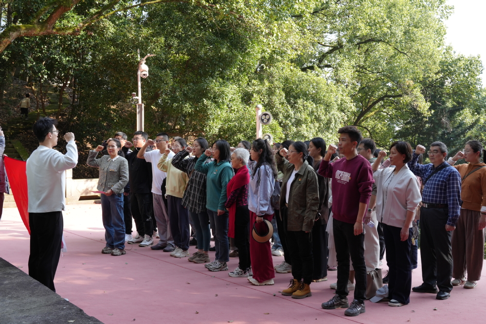 恰逢纪念反法西斯战争胜利80 周年,午后的武义人民英雄纪念碑前松柏苍翠,更显庄严肃穆。教职工整齐列队面向纪念碑肃立,在学院书记的带领下,全体党员干部举起右拳,目光坚定地凝视鲜红党旗,庄严重温入党誓词,誓言铿锵有力,回荡在广场上空。