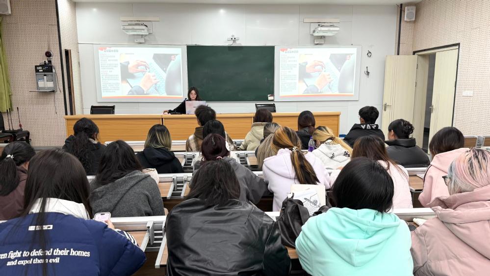 教师宣讲环节中,黄倩娜以“全会精神与艺术学子的成长机遇”为切入点,用接地气的表述拆解政策内涵,使抽象精神变得可感可知。她指出,党的二十届四中全会关于“建设文化强国”的部署,并非遥远的宏大叙事,而是与每一位艺术生息息相关的成长指南。黄倩娜围绕“懂精神、践行动、勇担当”三个维度展开讲解,明确全会提出的“思想引领力、精神凝聚力、价值感召力和国际影响力”的文化“四力”是艺术创作的核心方向,“激发全民族文化创新创造活力”是对青年创作者的时代召唤。她结合专业特色给出实践路径,鼓励学子在艺术课堂中打磨专业本领,练就“拿得出、用得上”的过硬技能,在文化沃土中汲取创作灵感,在艺术创新实践中服务社会需求,让青春在艺术报国的征程中绽放光彩。