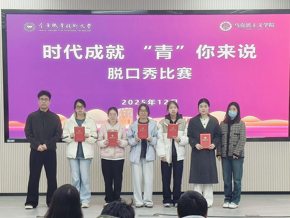 2025年12月16日晚,由马克思主义学院主办、形势与政策教学部承办、建筑工程学院红色读书协会协办的金职别样红“时代成就,‘青’你来说”主题脱口秀比赛在初心讲堂圆满落幕。