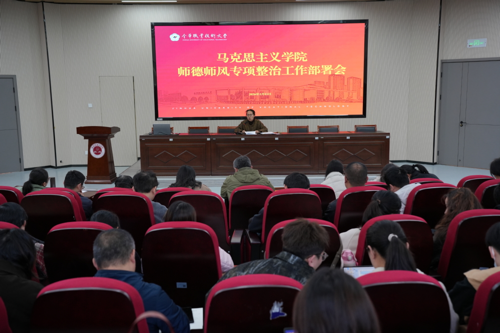 会议指出,师德师风建设是一项长期坚持、常抓不懈的重要工作,也是学院治理与内涵发展的关键环节。全体教职工要始终坚守廉洁从教、规范执教底线,自觉涵养高尚师德,做到修身立德、潜心治学、精心育人,展现新时代教师良好风貌。一是要提高政治站位,深刻认识师德师风专项整治的重要性和必要性,统一思想,凝聚共识,切实增强做好师德师风建设的紧迫感和责任感;二是要聚焦问题导向,深入查摆师德师风方面存在的薄弱环节与突出问题,以专项整治为抓手,推动师德养成覆盖全员、贯穿全过程、融入全方位;三是要压实工作责任,推动师德师风建设规范化、常态化,层层传导压力、狠抓任务落实,确保师德师风专项整治走深走实、见到实效。