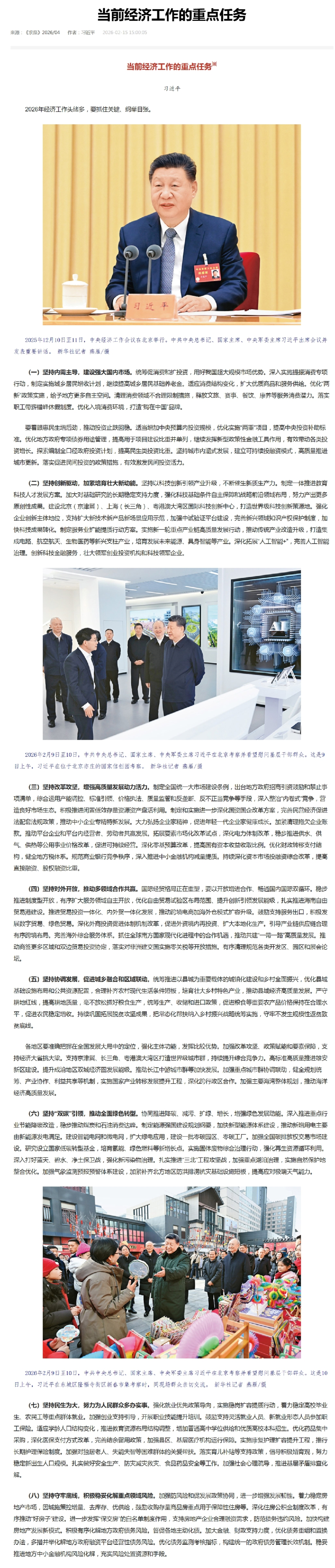 《求是》:习近平:当前经济工作的重点任务
