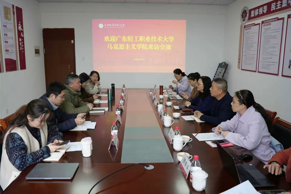 为进一步加强校际合作,推动马克思主义学院内涵建设与高质量发展,3月24日,广东轻工业职业技术大学马克思主义学院副院长蔡小葵一行6人莅临我院围绕马克思主义学院建设开展调研交流。学院院长薛俊强,党委委员胡嘉苗及相关教学部负责人、课程组组长参加座谈。