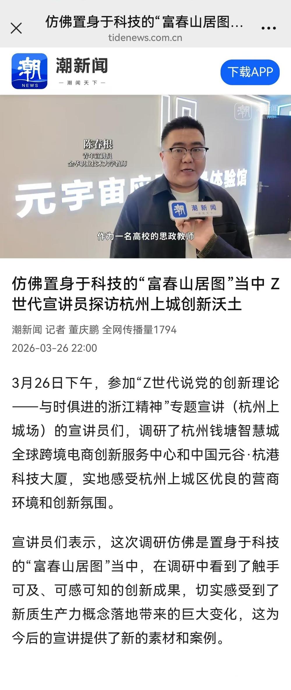 潮新闻:仿佛置身于科技的“富春山居图”当中 Z世代宣讲员探访杭州上城创新沃土