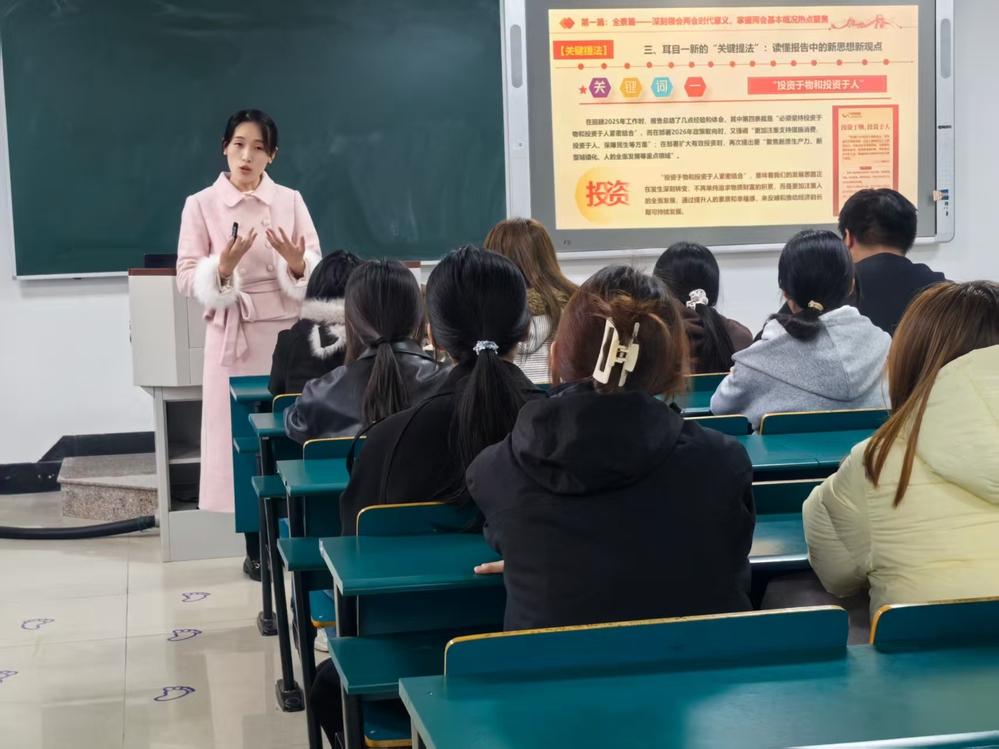 宣讲结束后,现场气氛热烈非凡,同学们踊跃发言,纷纷分享聆听宣讲后的心得体会。王成云感慨道,新大众文艺紧跟时代潮流,让传统文化传承焕发出新的生机与活力,让他深刻感受到数字技术赋能文化传承的强大力量。翁紫晴则结合两会关于“十五五”开局部署表示,国家正实现从“投资于物”向更加注重“投资于人”的转变,这让她深刻认识到国家发展与个人成长息息相关,国家在教育、就业等领域的投入,为青年成长提供了广阔平台。她鼓励身边同学紧跟国家步伐,坚定理想信念,科学规划个人就业方向,在奋斗中实现个人价值。