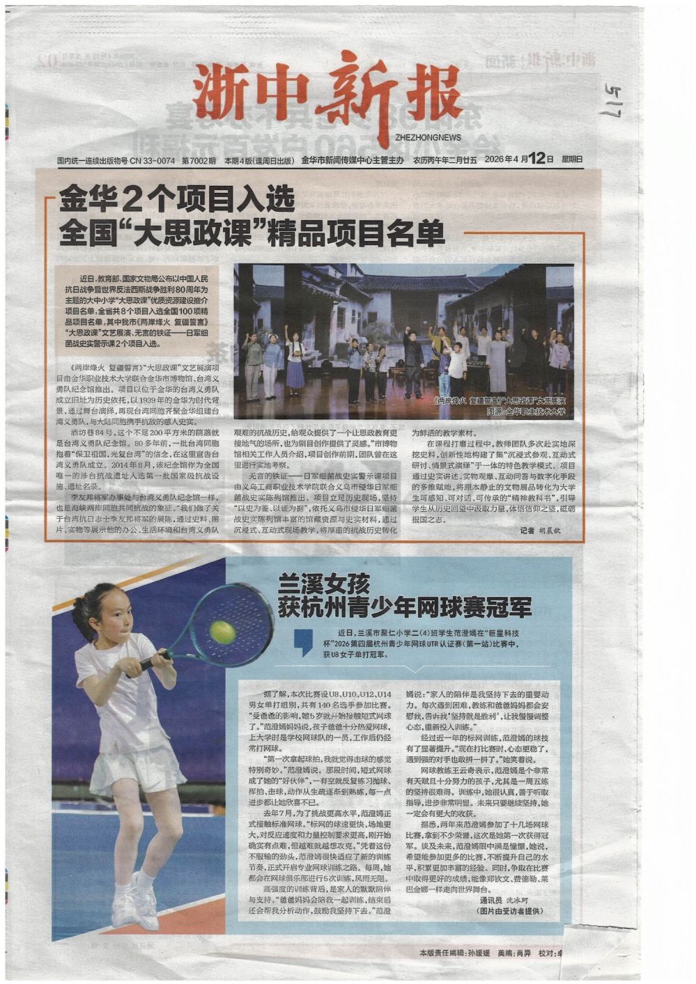 浙中新报:金华2个项目入选全国“大思政课”精品项目名单