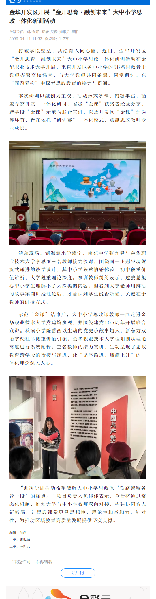 金彩云:金华开发区开展“金开思育·融创未来”大中小学思政一体化研训活动