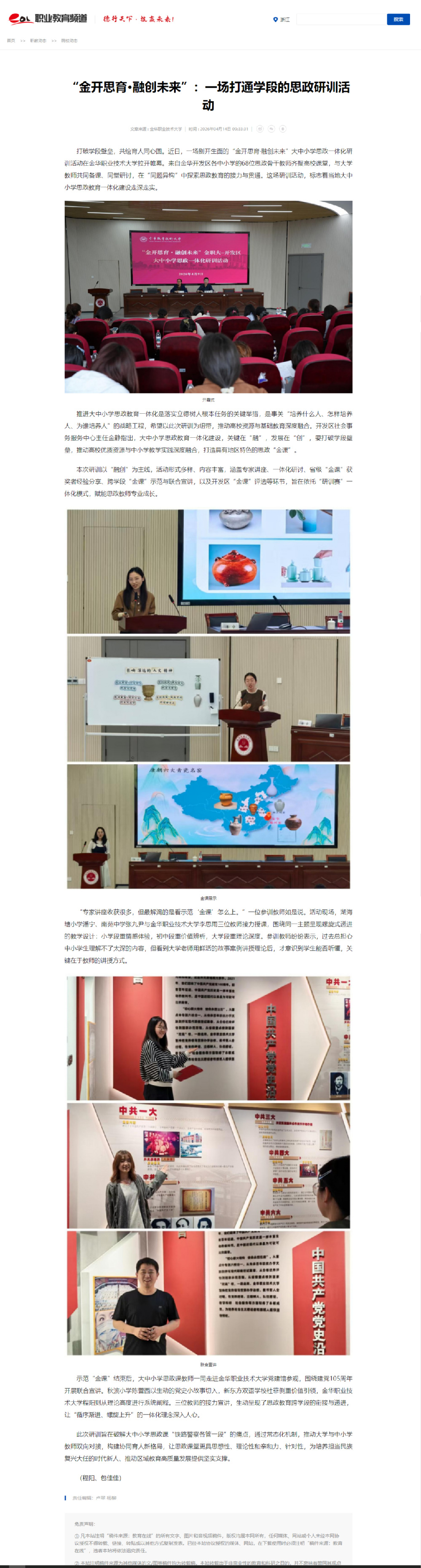 中国教育在线:“金开思育·融创未来”:一场打通学段的思政研训活动